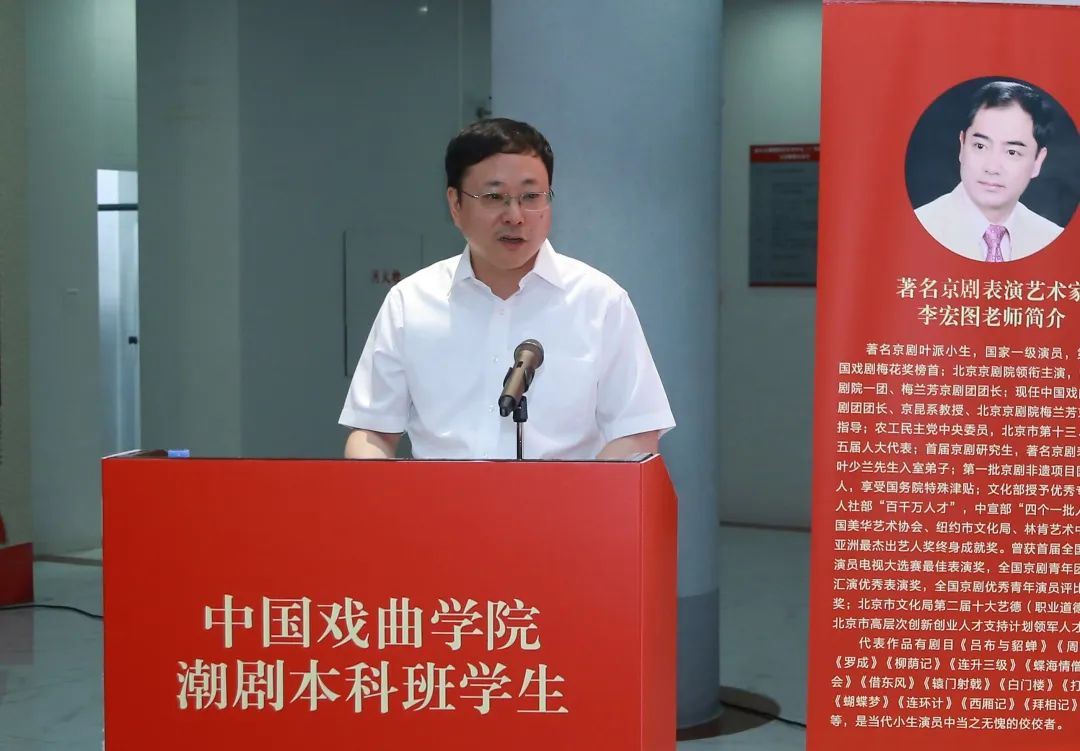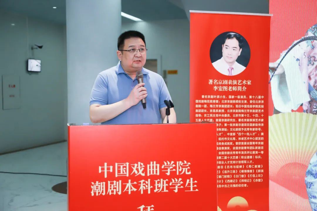 李宏图是著名京剧叶派小生、国家一级演员、第十八届中国戏剧梅花奖榜首,现任中国戏曲学院实验剧团团长、京昆系教授、北京京剧院梅兰芳京剧团艺术指导。此次,他收下中国戏曲学院潮剧本科班学生谢跃鹏为徒,对未来满怀期待。