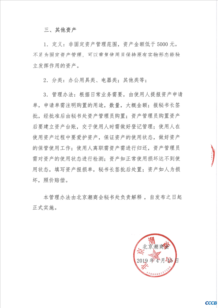 北京潮商会固定资产管理制度