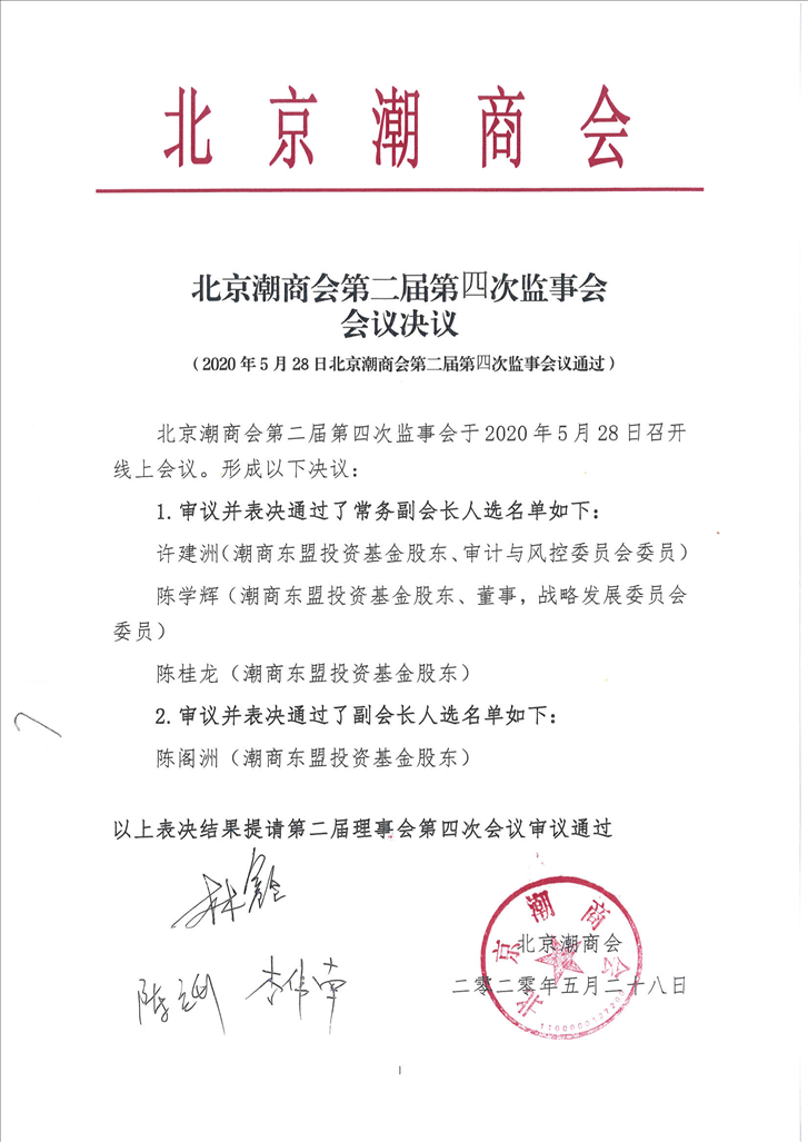 20200528第二届理事会第四次会议(线上会议)会议决议