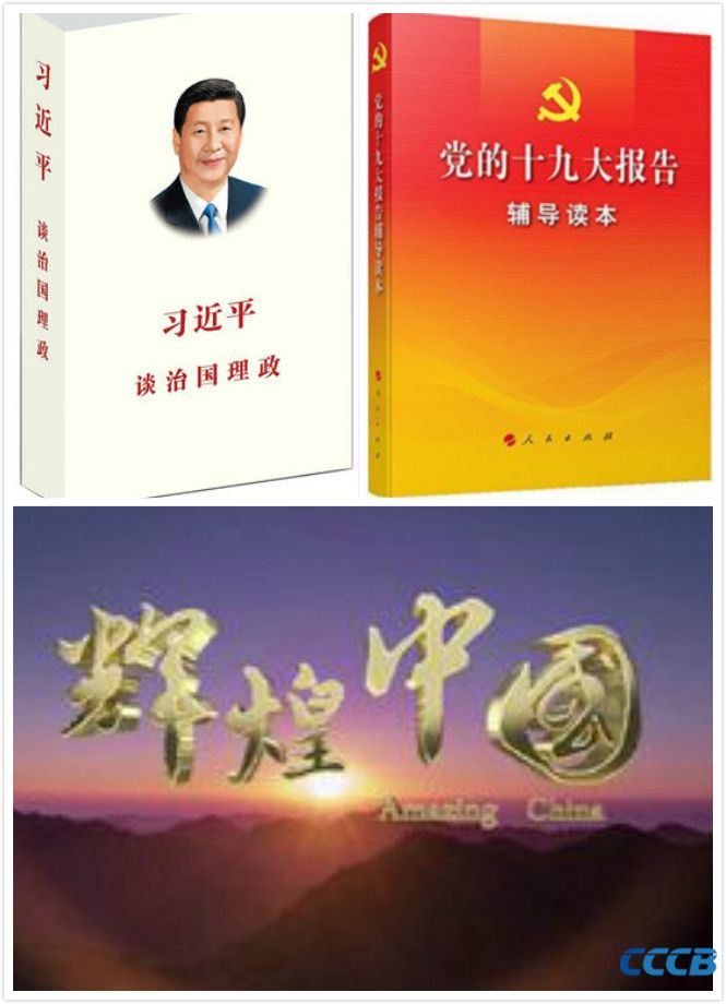 《习近平谈治国理政》第二卷,《习近平新时代中国特色社会主义思想学习纲要》,为广大干部群众深入学习领会习近平新时代中国特色社会主义思想和党的十九大精神提供权威读本。《党的十九大报告辅导读本》和《党的十九大报告学习辅导百问》等辅导材料,《将改革进行到底》、《法治中国》、《大国外交》、《巡视利剑》、《辉煌中国》、《强军》、《不忘初心、继续前进》等电视专题片,也是学习的重要内容。