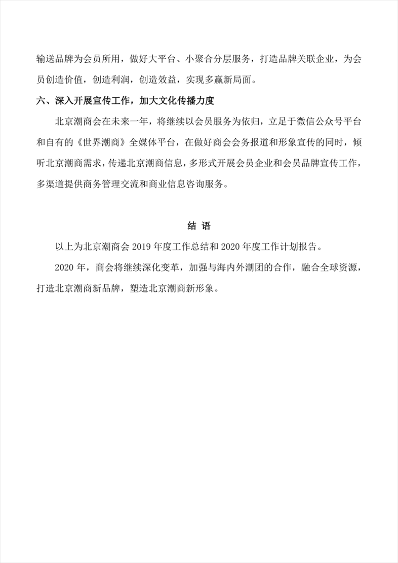 北京潮商会2019年度工作总结与2020年度工作规划报告