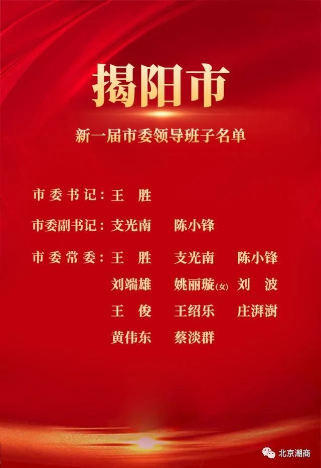 王胜,男,汉族,1968年3月生,在职研究生学历,经济学硕士,中共党员,当选为揭阳市委书记。