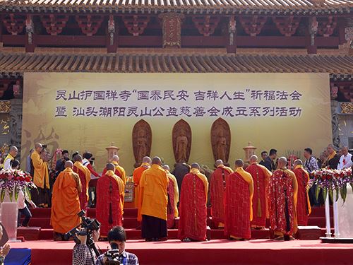 灵山公益慈善会成立仪式于灵山寺山门菩提广场隆重举行,国家宗教局吕晋光司长、广东省政协民宗委领导杨兴锋主任、罗继东主任、刘文炎主任、许广福巡视员、曾晓辉副主任、马建钊副主任;汕头市委常委、统战部长马逸丽、汕头市副市长赵红、潮阳区委书记陈新造、区委区政府等各级党政领导共同出席,汕头市人大代表、北京潮商会常务副会长、北京潮人海外联谊会副会长陈才雄作为主要捐赠人出席本次活动,并被聘为灵山公益慈善会名誉会长。